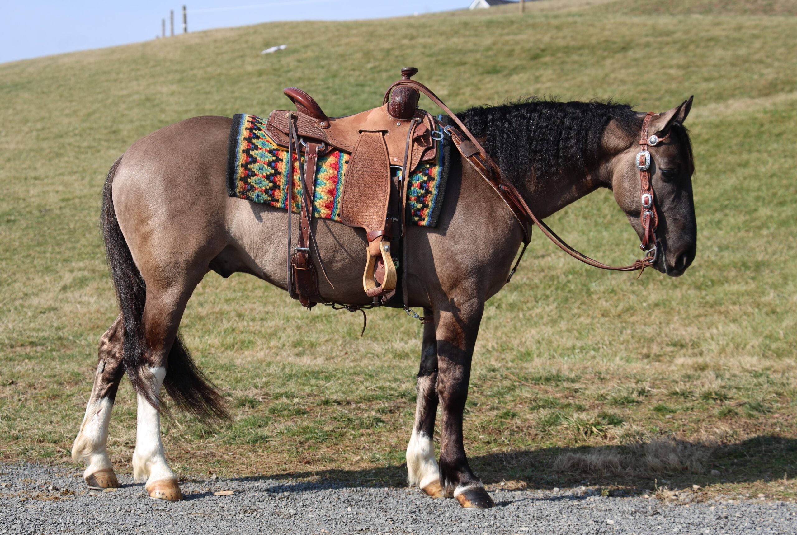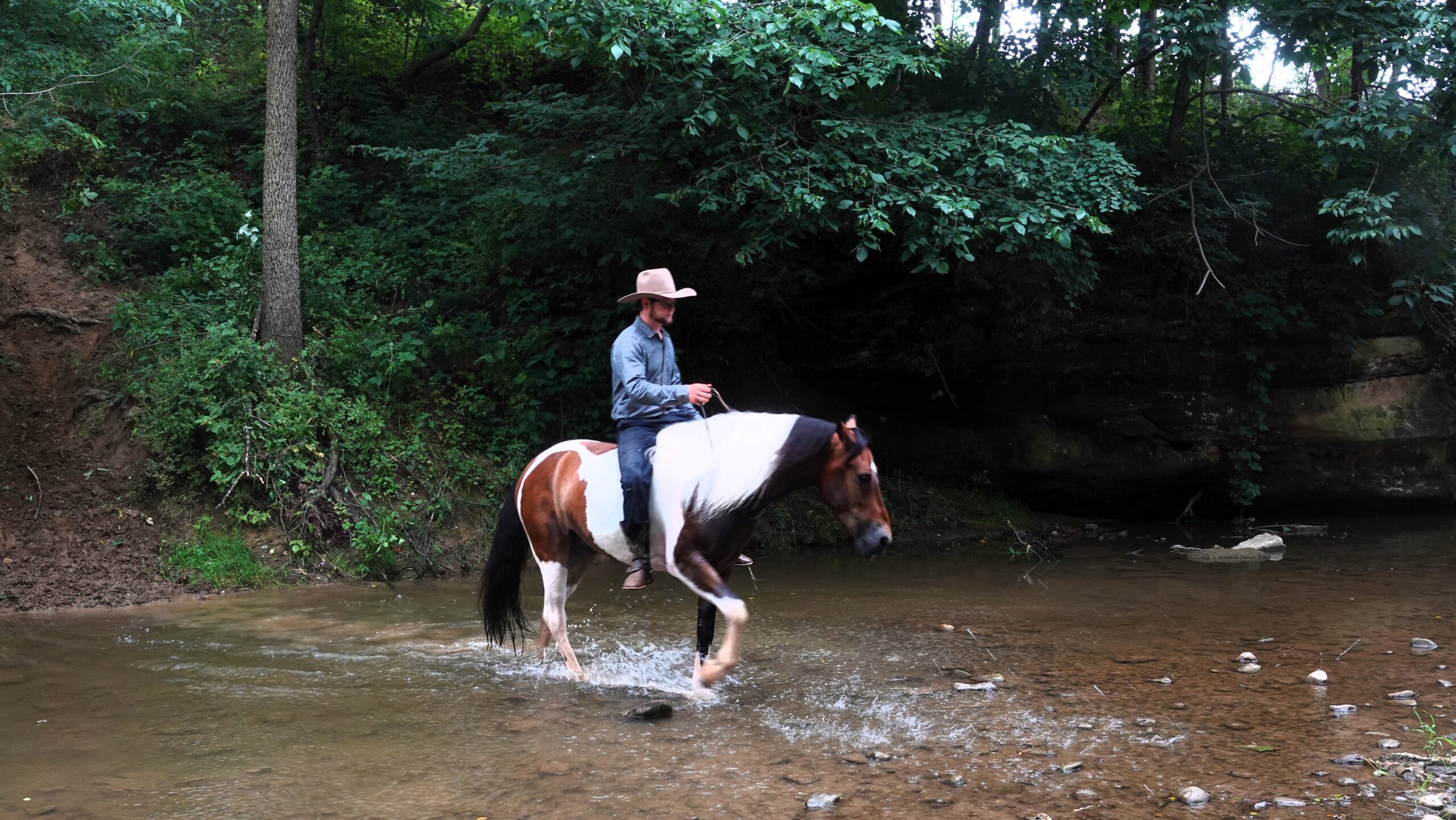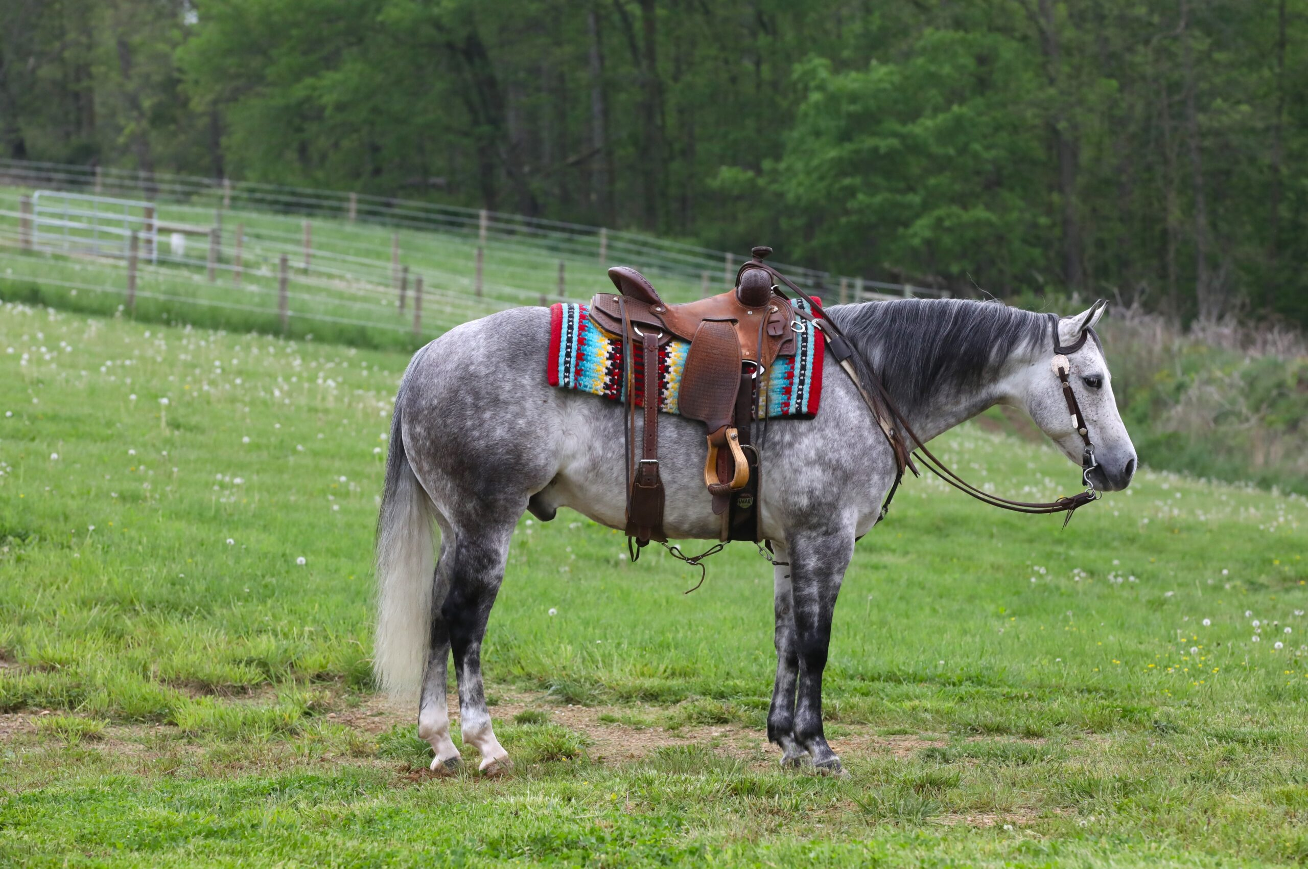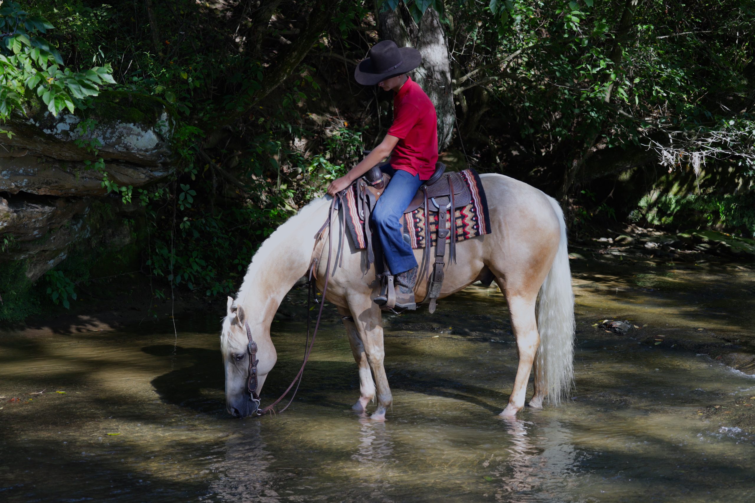 Bax is a well traveled horse that has been ridden in several states and has been used as a ranch horse in every aspect of ranch life. Doc has been trail ridden in several states and used at the stockyards to pen cattle on a few occasions. He will cross creeks, ditches, logs and navigate rough rocky areas. Bax is safe riding in traffic. He has a smooth jog, a nice lope, will slide stop, turns a circle both ways, side passes and backs with ease! Bax has been exposed to all kinds of wildlife such as deer or turkey or other animals like cows or dogs and will go anywhere that he is asked too. He has been rode many miles in the mountains of Eastern Kentucky and encountered every obstacle possible on the trail. He will go up or down even the steepest slopes, across deep creeks, over downed trees, and over all types of rough terrain while still being sure footed. If you want to feel and look like a real deal cowboy/cowgirl just climb on Bax and he will make you look like one