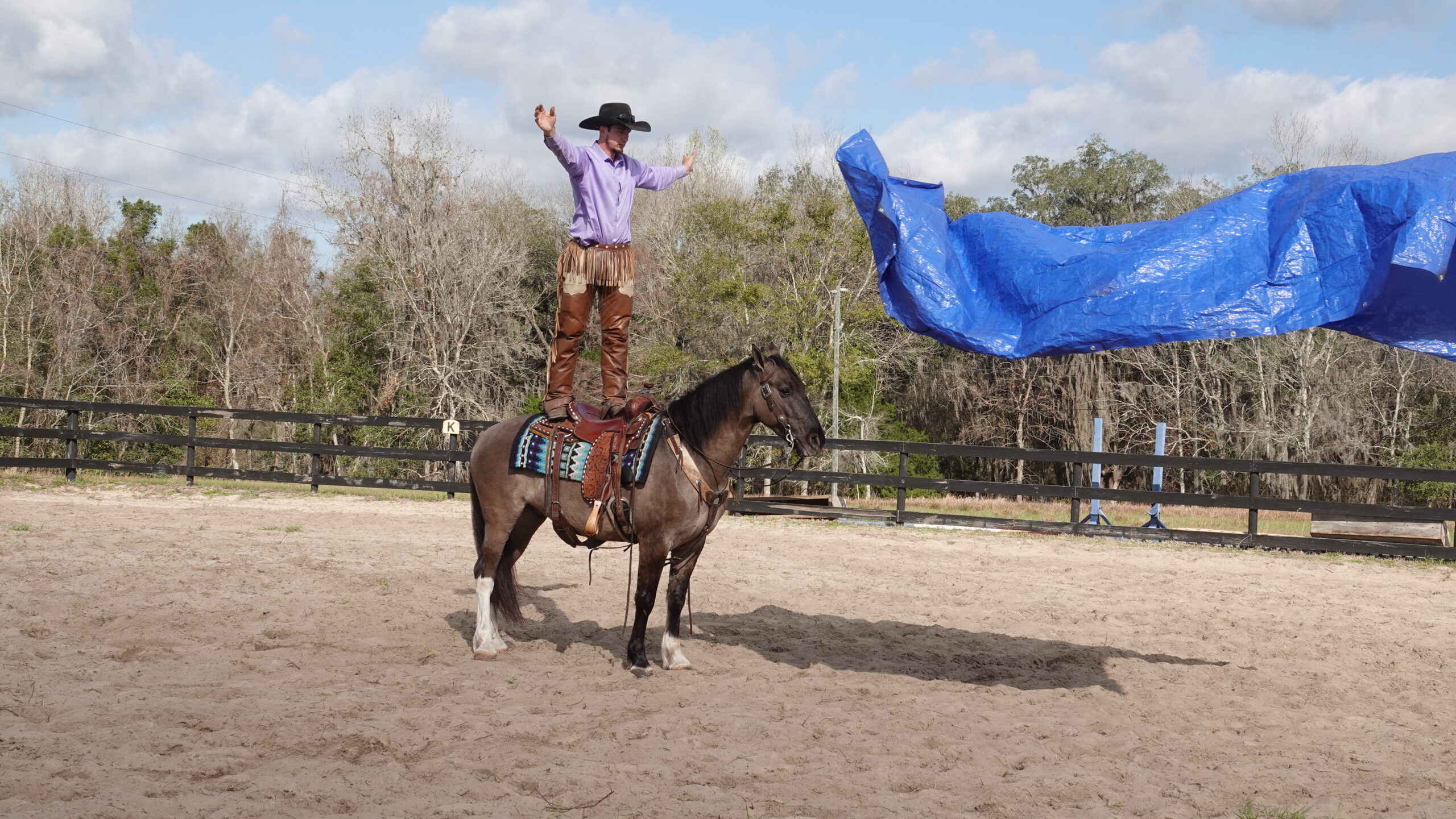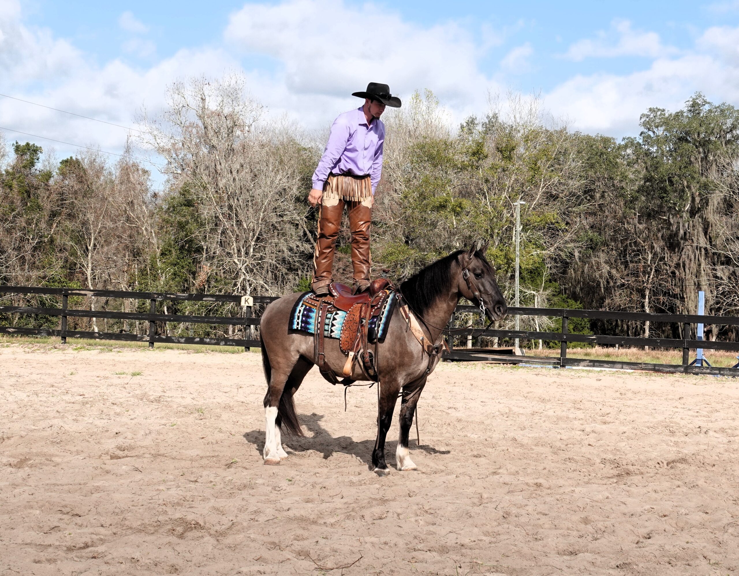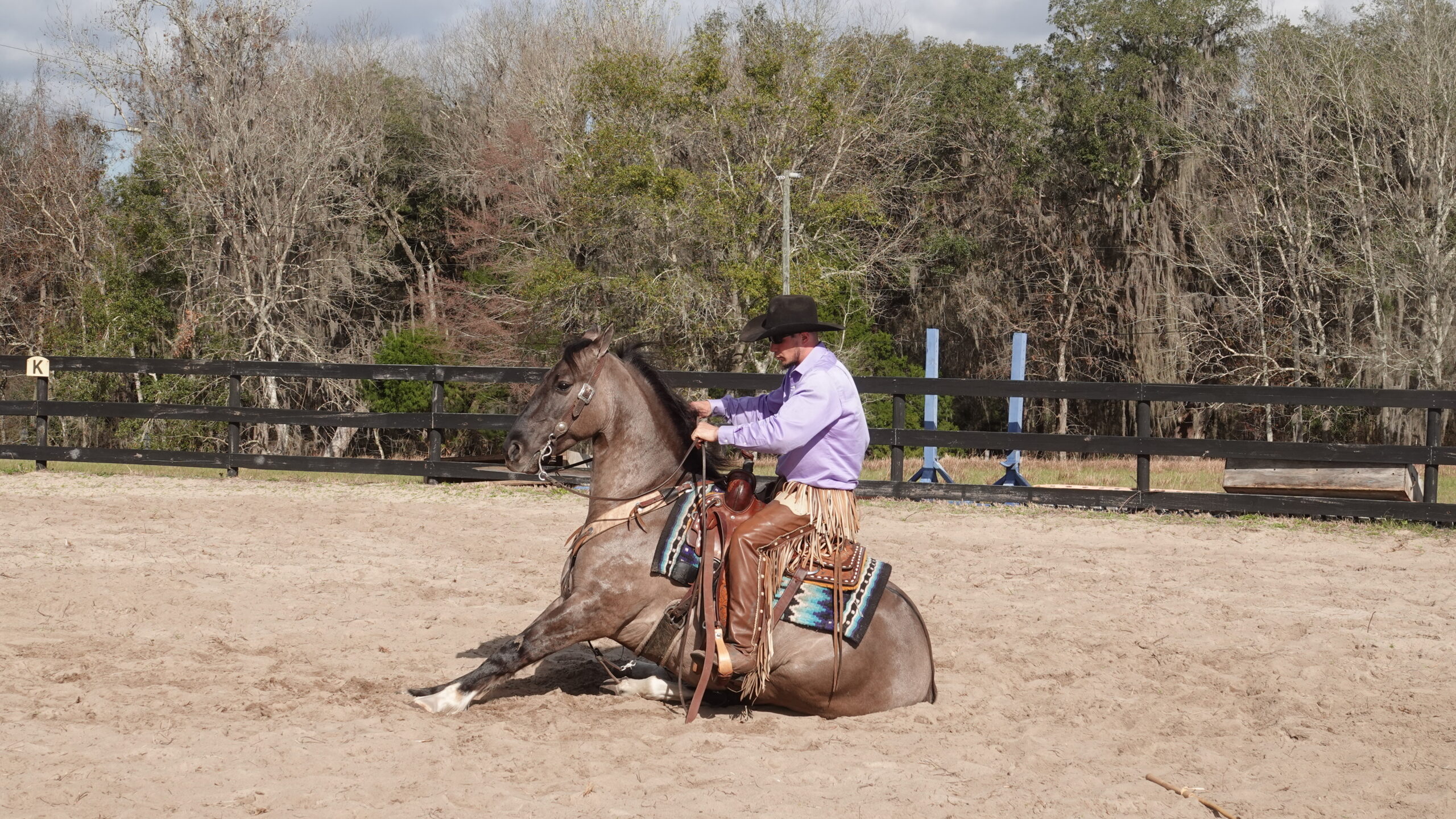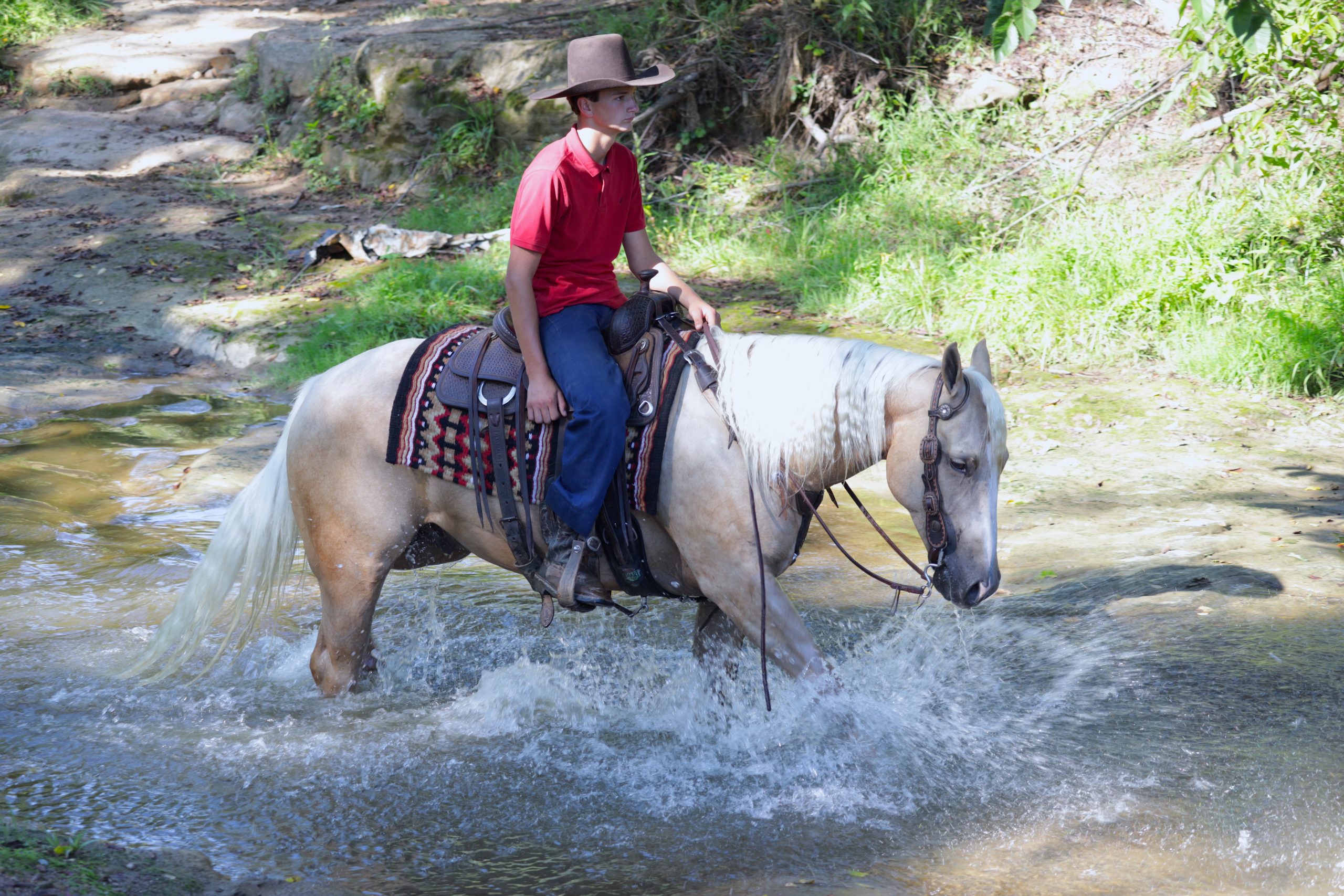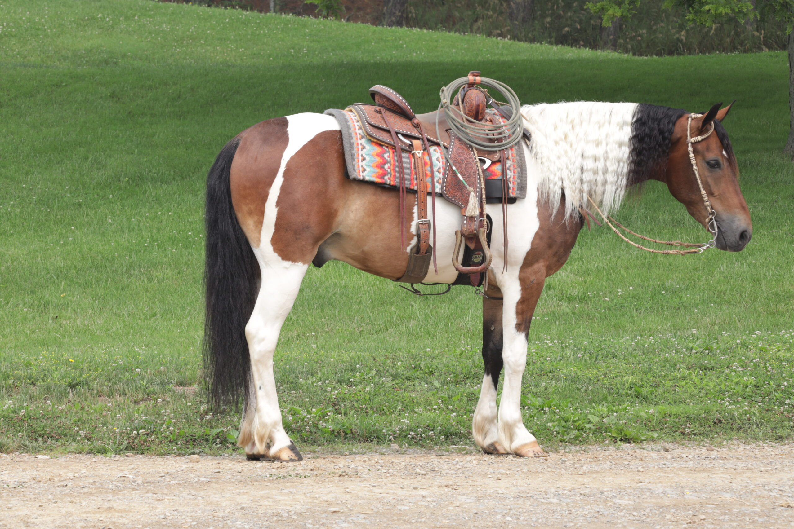 Bax is a well traveled horse that has been ridden in several states and has been used as a ranch horse in every aspect of ranch life. Doc has been trail ridden in several states and used at the stockyards to pen cattle on a few occasions. He will cross creeks, ditches, logs and navigate rough rocky areas. Bax is safe riding in traffic. He has a smooth jog, a nice lope, will slide stop, turns a circle both ways, side passes and backs with ease! Bax has been exposed to all kinds of wildlife such as deer or turkey or other animals like cows or dogs and will go anywhere that he is asked too. He has been rode many miles in the mountains of Eastern Kentucky and encountered every obstacle possible on the trail. He will go up or down even the steepest slopes, across deep creeks, over downed trees, and over all types of rough terrain while still being sure footed. If you want to feel and look like a real deal cowboy/cowgirl just climb on Bax and he will make you look like one